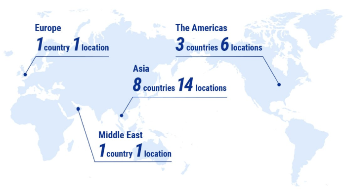 22 locations in 13 countriesCovering over 200 countries/areas globally under a strategic alliance with UPS